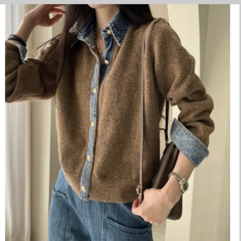 ■デニムシャツレイヤード風カーディガンの魅力は、そのスタイリッシュな佇まいと使いやすさにあります。普段使いはもちろん、ちょっとしたお出かけにも対応しており、どんなコーディネートにも自然に馴染む点がポイントです。また、柔らかい素材のため、毛玉ができやすいので使用後はブラシを使ってお手入れしていただくことをおすすめします。